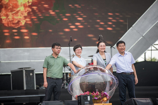 开幕式现场,由姜堰区旅游局局长王斌先生主持,度假区管委会主任王荣明先生致辞,王荣明表示首届溱湖丰收节将秉承“庆祝丰收、弘扬文化、振兴乡村”的宗旨,因地制宜、突出特色,开展喜闻乐见的活动,邀请大家共同见证科技强农新成果、产业发展新成就、乡村振兴新面貌。同时,他也希望通过“溱湖八鲜”美食节这一优秀的载体,让大家能够更好地走近溱湖、感受溱湖,宣传姜堰旅游。为了让广大的游客朋友更进一步认识到最正宗、美味的“溱湖八鲜”,现场,主办方特别安排播放了溱湖八鲜宣传片。最后,姜堰区委、区政府泰州旅游局和溱湖度假区的几位领导共同启动开幕式启动球,宣告首届溱湖丰收节暨2018溱湖美食节正式开幕。